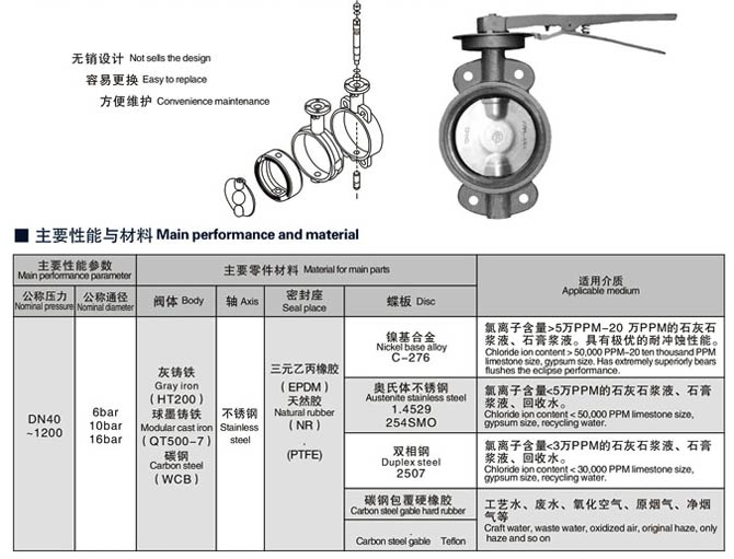 氣動(dòng)脫硫蝶閥是我公司根據(jù)目前國(guó)內(nèi)煙氣脫硫系統(tǒng)需求而設(shè)計(jì)的專用產(chǎn)品。為適應(yīng)石灰石漿液和石膏漿液的腐蝕,閥板和閥桿采用了