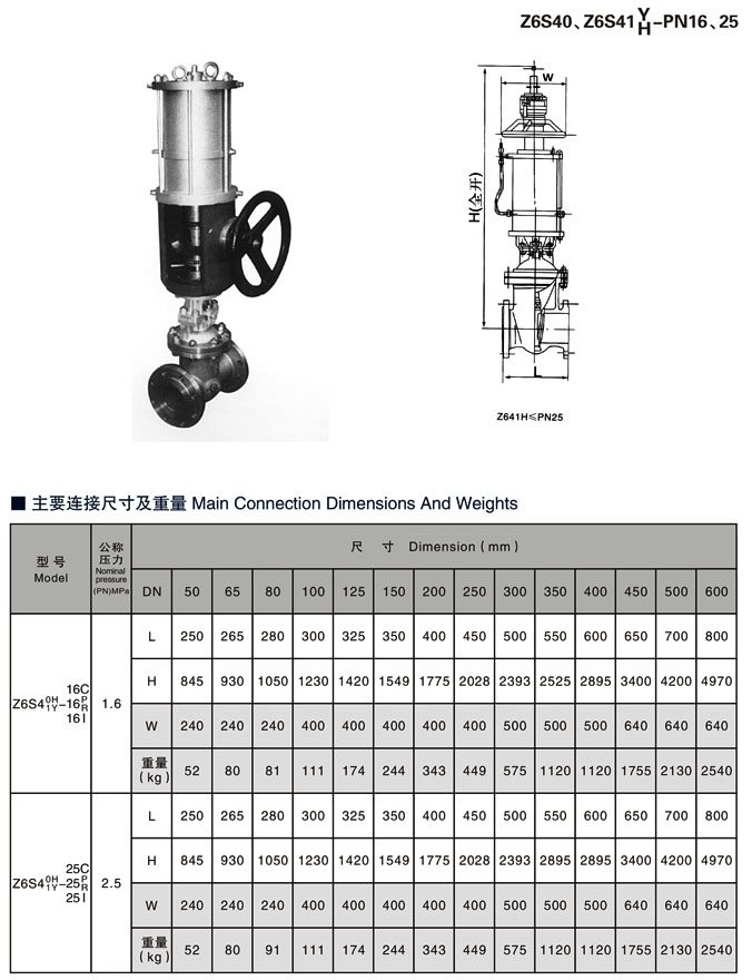 氣動閘閥/Z641H,Z641W,Z641Y氣動閘閥說明書