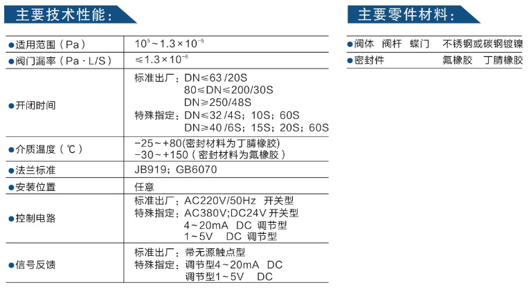 電動(dòng)高真空蝶閥主要技術(shù)性能