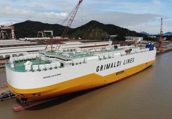 從中國舟山揚(yáng)帆船廠訂購的7艘PCTC(純汽車和卡車運(yùn)輸船)中的最后一艘星期二(6月8日)交付給格里馬爾迪集團(tuán)。她的名字叫格蘭德加州,和她已經(jīng)服役的六個(gè)姐妹部隊(duì)一樣,她是世界上最大、最環(huán)保的汽車運(yùn)輸公司之一。