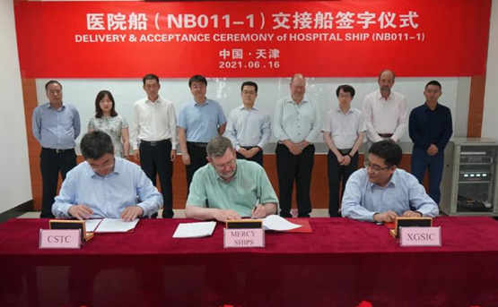 6月16日,新港船舶重工為美國船東Mercy Ships公司建造的醫(yī)院船順利簽字交付,即將前往比利時(shí)進(jìn)行余下的安裝工作。