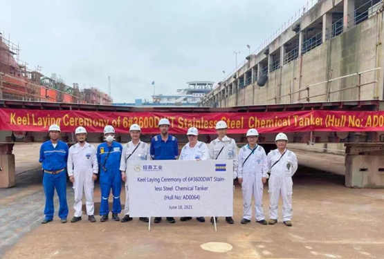 6月18日,由揚(yáng)州金陵建造的3600噸不銹鋼化學(xué)品6#船如期進(jìn)塢。船東代表、船級社代表、揚(yáng)州金陵3600項目負(fù)責(zé)人出席了進(jìn)塢儀式。