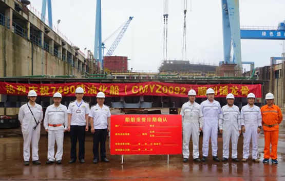 同日,7490噸不銹鋼化學(xué)品船首制船順利進(jìn)塢,船東代表、揚(yáng)州海事局代表、CCS船級社代表、揚(yáng)州金陵7490項目負(fù)責(zé)人出席了進(jìn)塢儀式。