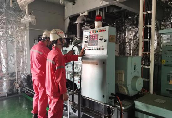為順利完成船塢內(nèi)應(yīng)急發(fā)電機動車的節(jié)點目標(biāo),外高橋造船調(diào)試項目團隊在首制船建造經(jīng)驗基礎(chǔ)之上,奮力協(xié)同機裝作業(yè)區(qū)積極有序組織高效生產(chǎn),重點強化應(yīng)急發(fā)電機船塢內(nèi)統(tǒng)籌安裝工作;相繼完成配電板檢查通電、開通監(jiān)測報警系統(tǒng)及柴、滑油加注工作,為后續(xù)碼頭系泊試驗開展提供了有力保障。