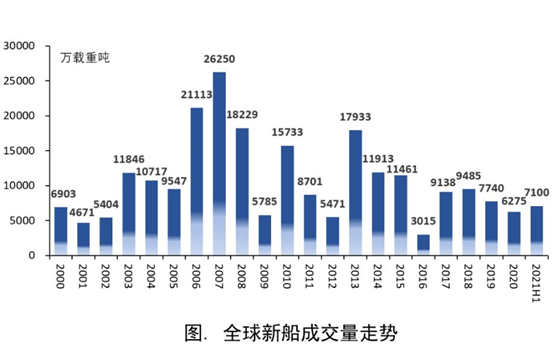 據(jù)不完全統(tǒng)計,2021年上半年全球累計成交新船訂單約950艘、7100萬載重噸,同比大漲近180%。從細(xì)分船型市場看,以載重噸計,集裝箱船訂單占比超過50%,油船訂單占比約23%,散貨船訂單占比約16%,液化氣船訂單占比約7%據(jù)統(tǒng)計配套船用閥門生產(chǎn)廠家訂單有所增加。