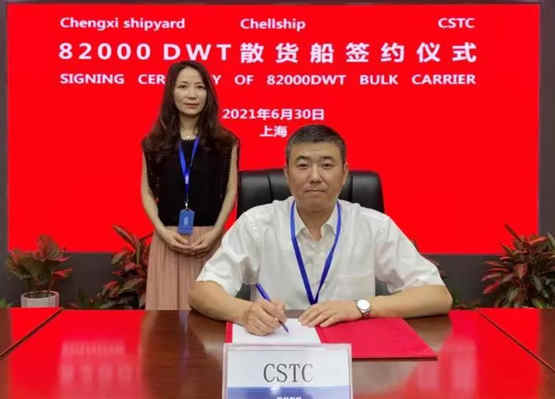 6月30日,中國船舶集團旗下中船貿(mào)易聯(lián)合中船澄西與CHELLSHIP公司通過云簽約方式簽署1艘8.2萬噸散貨船訂單。CHELLSHIP、中船澄西、中船貿(mào)易代表分別在造船合同上簽字。