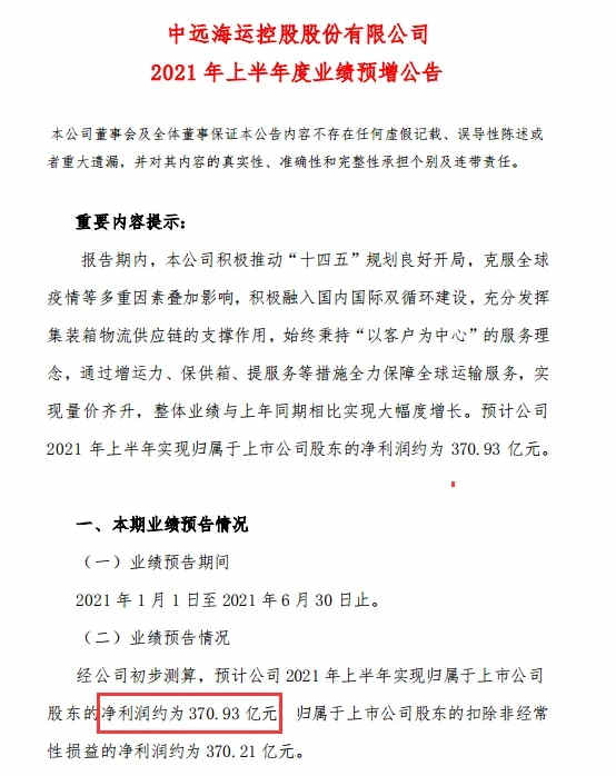 中遠(yuǎn)???月7日晚間披露業(yè)績預(yù)告,上半年預(yù)盈370.93億元,同比增長3162%,上年同期凈利潤為11.37億元。以半年183天計(jì)算,這只曾被稱為“虧損王”的航運(yùn)股,如今每天要凈賺2億元。