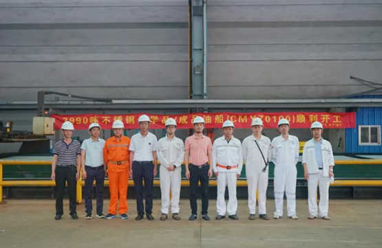 7月7日,由揚州金陵建造的7990噸不銹鋼化學品船順利開工。船東代表、船級社代表、揚州金陵7990項目負責人出席了開工儀式。