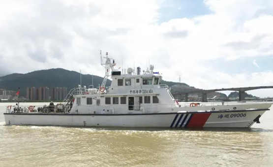 “海巡09006”船為圓舭長折角線型、前傾艏、方艉、通長甲板排水型高速船。主船體為鋼質(zhì),上層建筑為鋁質(zhì),整船總長33.2米,型寬6.0米,采用雙機、雙槳和雙舵推進,設(shè)計航速21.5節(jié)。船上配備了先進的通訊雷達、導(dǎo)航定位、信息采集和監(jiān)控設(shè)備,滿足現(xiàn)代海上執(zhí)法與應(yīng)急需求。