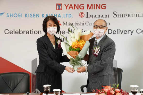 由今治造船為陽明海運(yùn)量身打造的11,000TEU級(jí)集裝箱船“帆明”輪(YM Travel)于今日在今治造船廣島船廠舉辦新船命名暨交船典禮儀式,典禮由今治造船主持,透過線上視訊方式連線陽明海運(yùn)臺(tái)北辦公室,同時(shí)邀請(qǐng)永豐金控董事長陳思寬女士擔(dān)任「帆明輪」之命名人,為新船獻(xiàn)上一帆風(fēng)順、班班滿載的圓滿祝福。