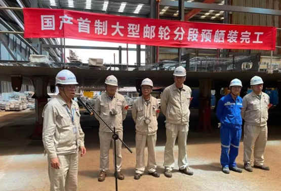 7月23日,郵輪項目H1508船CS18C、CS19C兩個分段舾裝報驗完成,宣告了國產(chǎn)首制大型郵輪分段預舾裝工作全部結束。外高橋造船副總經(jīng)理周琦及相關郵輪參建人員參加了完工儀式。