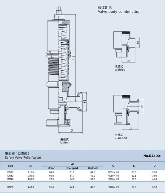 該系列安全閥是通過調(diào)整彈簧的壓緊螺母來校準(zhǔn)一個特定壓力。校準(zhǔn)壓力是為了避免設(shè)備損壞而定的最大壓力值。在正常工作壓力下,閥門關(guān)閉的;當(dāng)系統(tǒng)壓力超過校準(zhǔn)壓力時,閥門關(guān)閉的;當(dāng)系統(tǒng)壓力超過校準(zhǔn)壓力時,閥門開啟。管道系統(tǒng)中的壓力得到釋放,從而達(dá)到對管路及設(shè)備的保護(hù)。該閥們還有啟動開啟裝置,對于安全閥及其管路進(jìn)行CIP清洗。