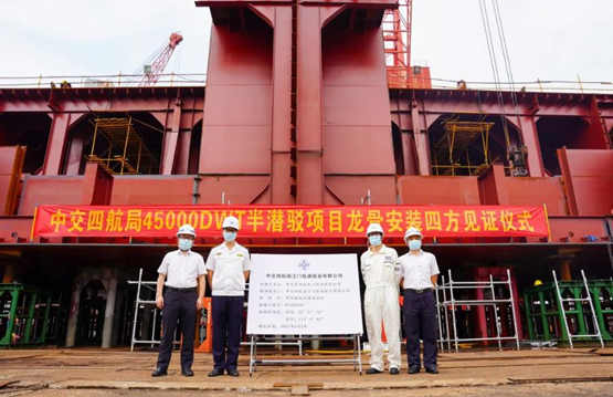 6月1日,航通船業(yè)在制造中心舉行45000DWT半潛駁龍骨安裝四方見證儀式,與四航局、江門海事局、中國船級社珠海分社代表共同簽署了《四方見證》文件。