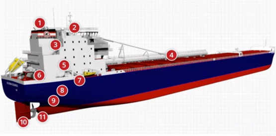 AlgomaCentral Corp表示,此次建造的Seaway-Max級(jí)自卸散貨船是此前建造的Equinox級(jí)自卸散貨船的升級(jí)版,具有更高的燃料效率,并能夠在發(fā)動(dòng)機(jī)功率較低的情況下提高航速和載重能力。此外,該設(shè)計(jì)在船尾和雙舵的設(shè)計(jì)上也實(shí)現(xiàn)了創(chuàng)新,閥門安裝符合標(biāo)準(zhǔn),有效減輕船舶重量,以及拓寬貨艙空間,使船舶容量增加約1440噸(tonnes)。