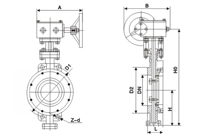 | H | H1 | A | B | PN0.6MPa | PN1.0MPa | ||||||